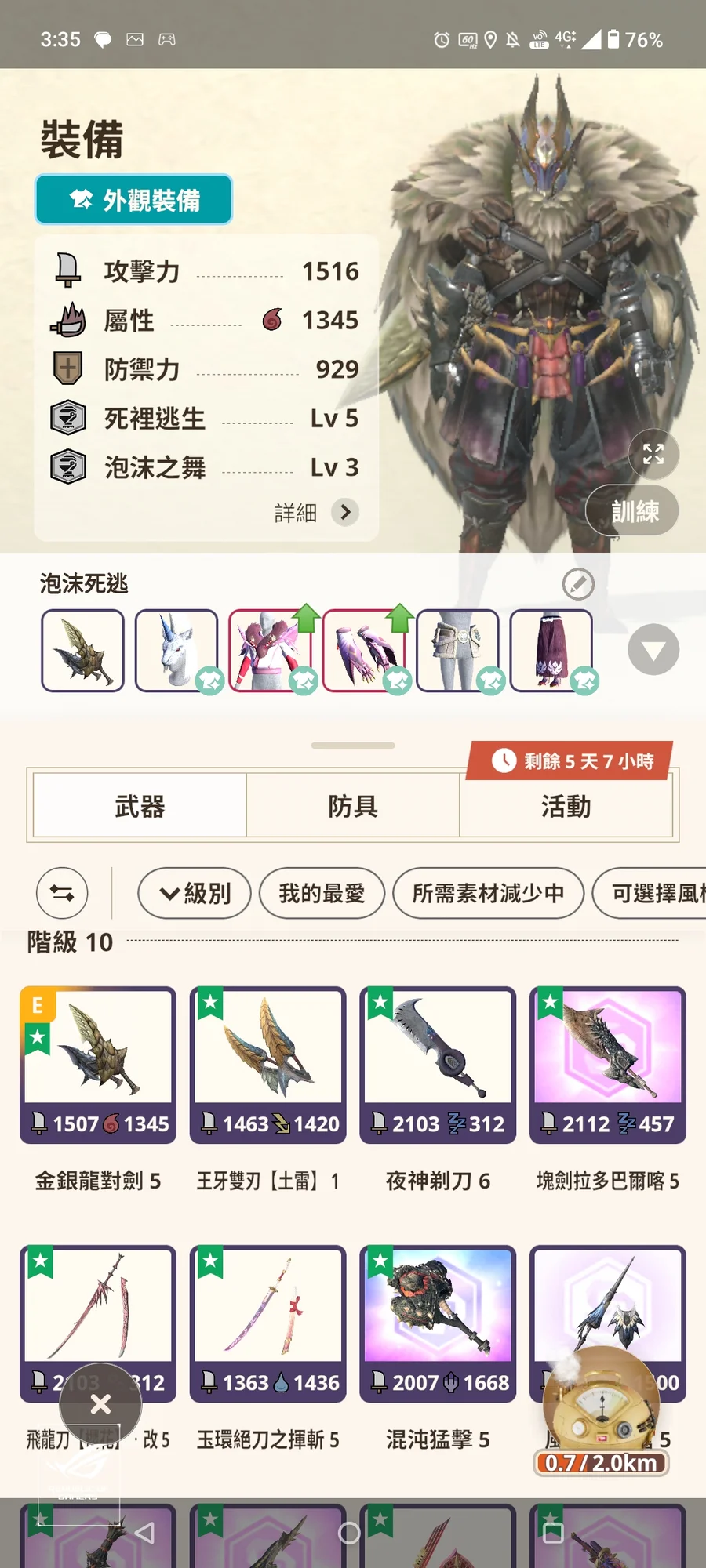 黑角頭10-5、浮空腰10-5、轟龍腿10-5