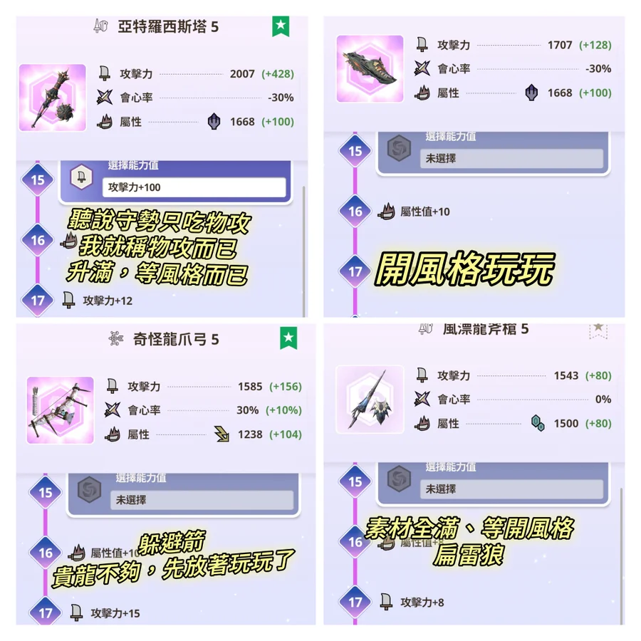 多把不同類型滿級武器