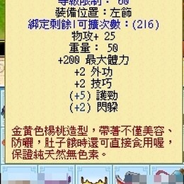 楊桃眼鏡, 60, 體力+200、外功+2、技巧+2、物攻+25