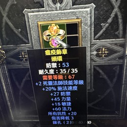 極品黃頭,2死靈,20施法,45力量,18敏捷,60法力,20全抗,傷害降低3