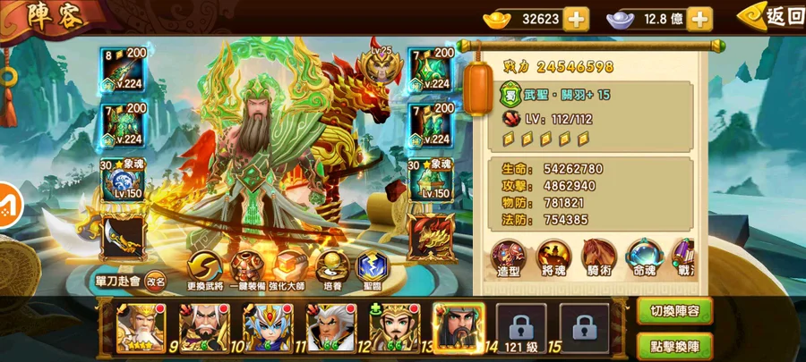 各武將、協戰裝備、神獸、戰魂戰力見圖片。集中資源培養,🔥🔥武聖•關羽+15戰力破2450萬🔥🔥超高等級戰魂、神獸🔥🔥遺珍、協戰奇珍齊全🔥🔥