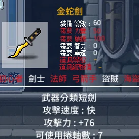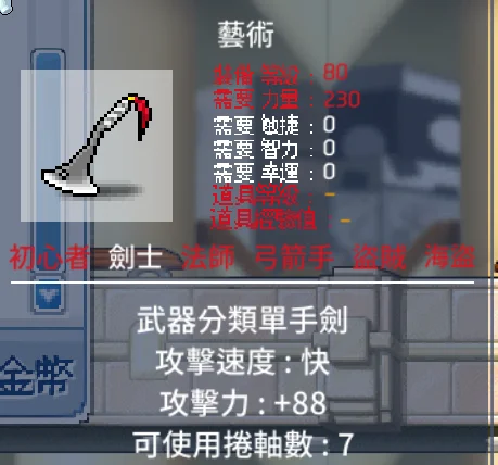 『道具名稱』:劍士武器