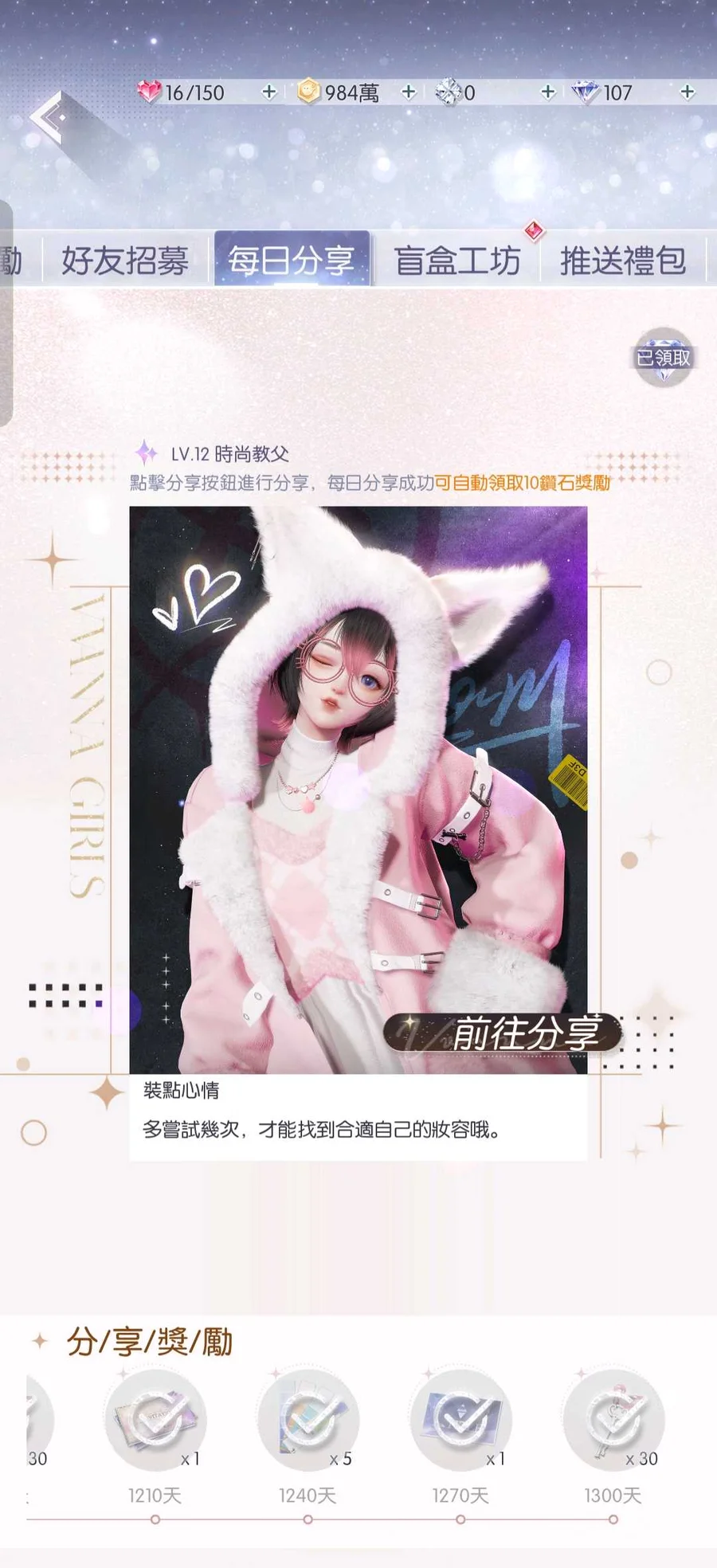 有首次改名 生日1/1 持續遊玩中 所有免費活動都有參與 每天能用的東西都會用