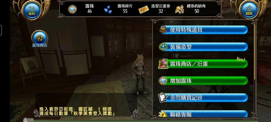 使用 露珠、禮券 後所獲得的時裝、道具,在各平台都可以看到呦~