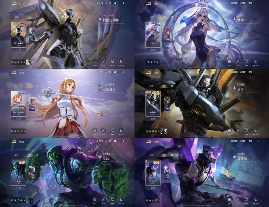 一代亞絲娜(已絕版)、瑟斐斯+拉茲合金進化、呂布鋼鐵戰線、夜叉+銀晝朔月銀衛、莫拉異星覺醒、納克合金進化滿級和四星際議會系列等課金造型一次擁有!
