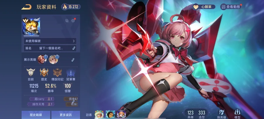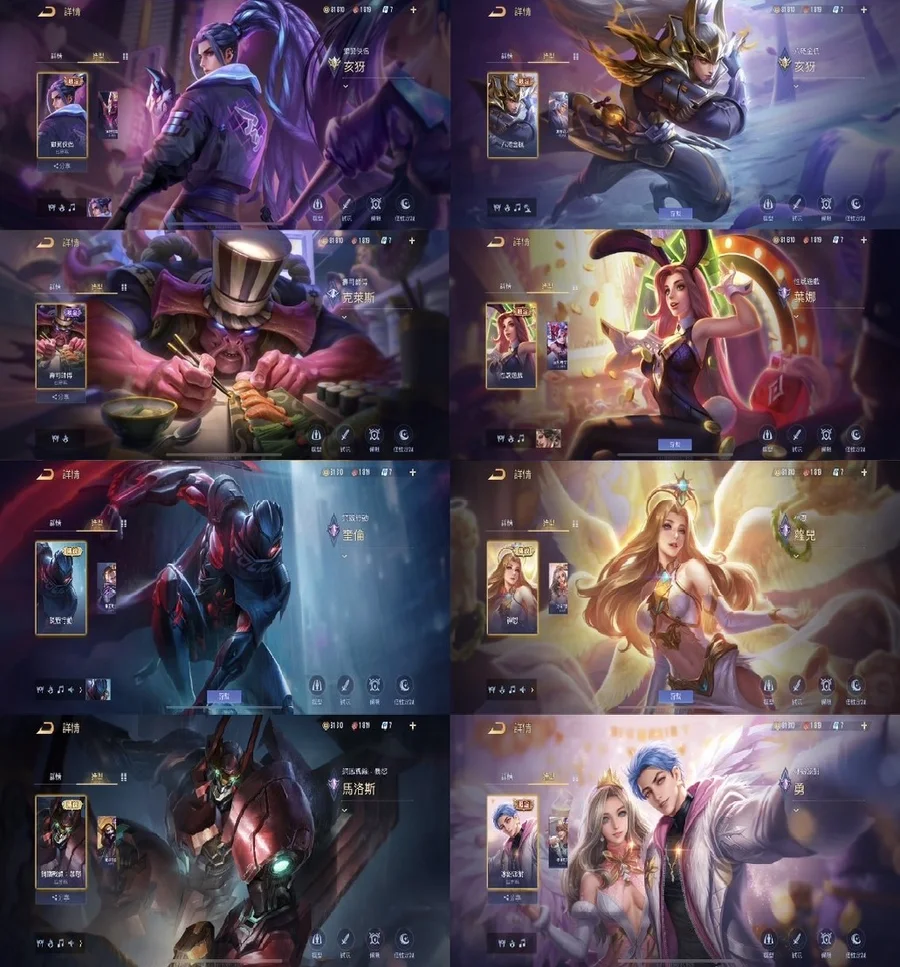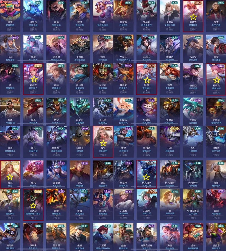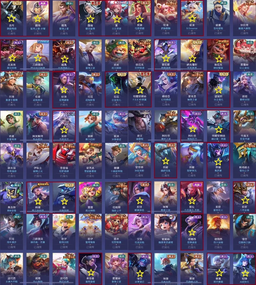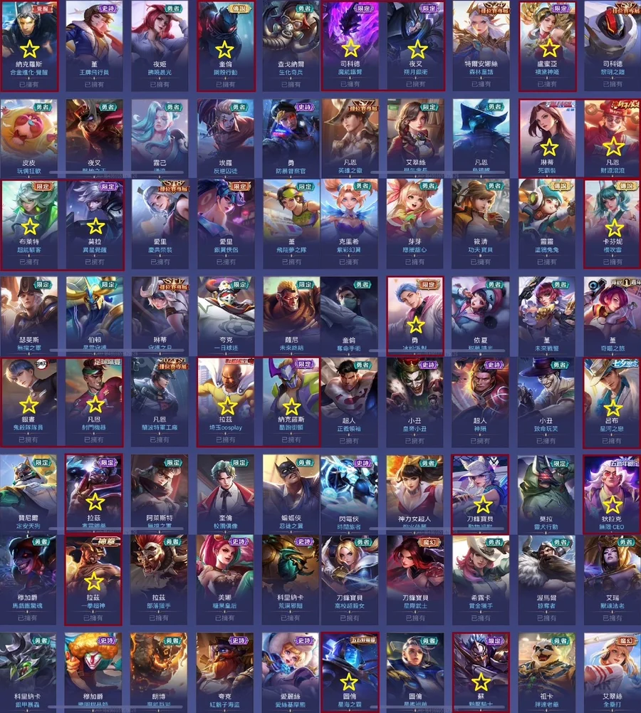 勝率佳!!全英雄三百多造型!共123英雄333造型!勝率近53%!!共14次S戰場傳說印記!!常用奧義皆已齊全!!多課金抽獎造型!