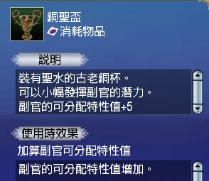 ~ 銅聖盃( 副官點數+5點,50個/件;1組200個=100nt ) ~