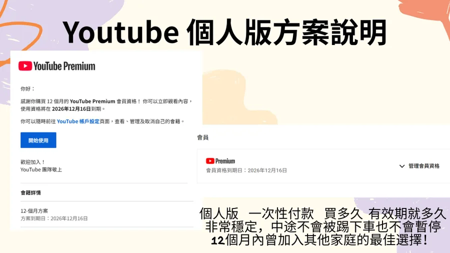 🚫 YouTube Premium 個人家庭方案(已停售)