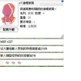 如題【刷帕莎納專用】+7連帽披肩Mhp+227;火屬性物理8%;人類怪物5%→未插卡