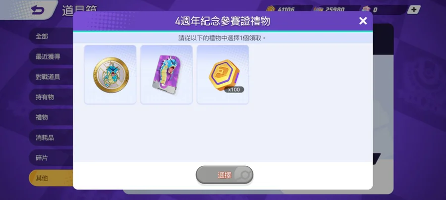 ~三個超級持有物強化組件&三個持有物滿級體驗卡&四周年任選盒(如圖)