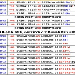 以下组合 必带EX裂空座x1 随机2期得卡挑战 必带1500+商店券 | |||