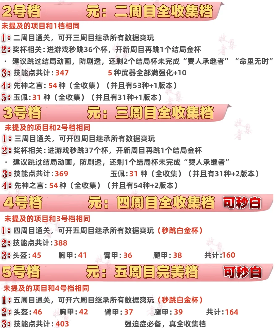 1號存檔(一周目全收集)+5號存檔(五周目秒白金)