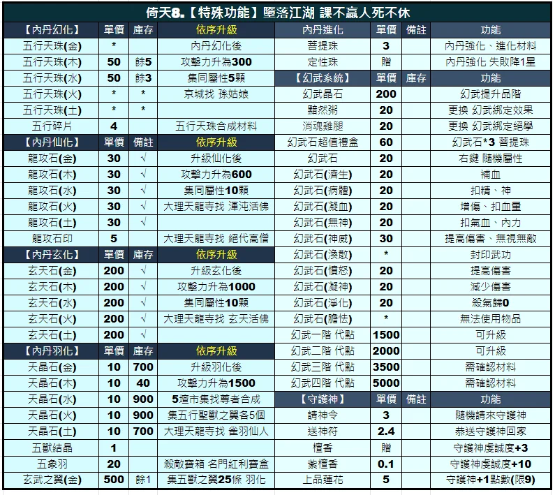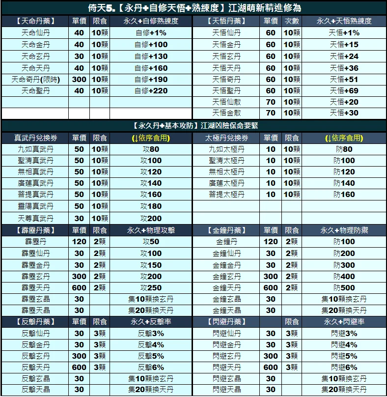 9倚天/笑傲/碧血【百分百】各式道具|遊俠|X2|五甲|悟裝|攻防丹|屬性丹