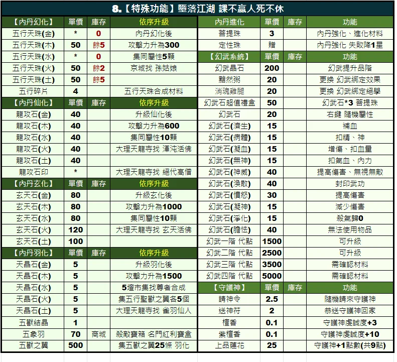 18五仙教【百分百】各式丹|五甲|悟裝|屬性|攻防|氣血