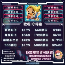 🏆️歐啦!守得豬 台服代儲賣場🏆️