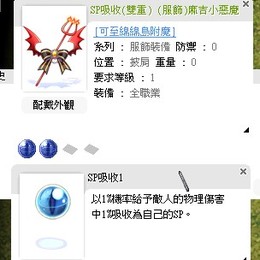 (服飾)麻吉小惡魔[SP吸收 SP吸收雙重] 練功刷圖超好用 SP滿滿