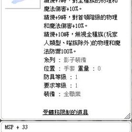 +10 影子純淨聖潔手套 ( C.RATE+3 對首領階級物理傷害+10% )