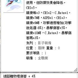 +10 影子優越突擊神盾 ( 遠距離傷害+4% + C.RATE+4 )