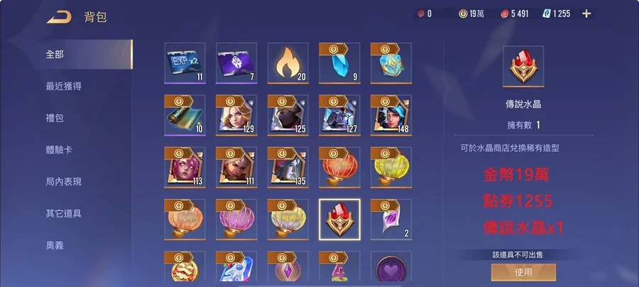 📌點亮27萬次、金幣19萬、點券1255、傳說水晶