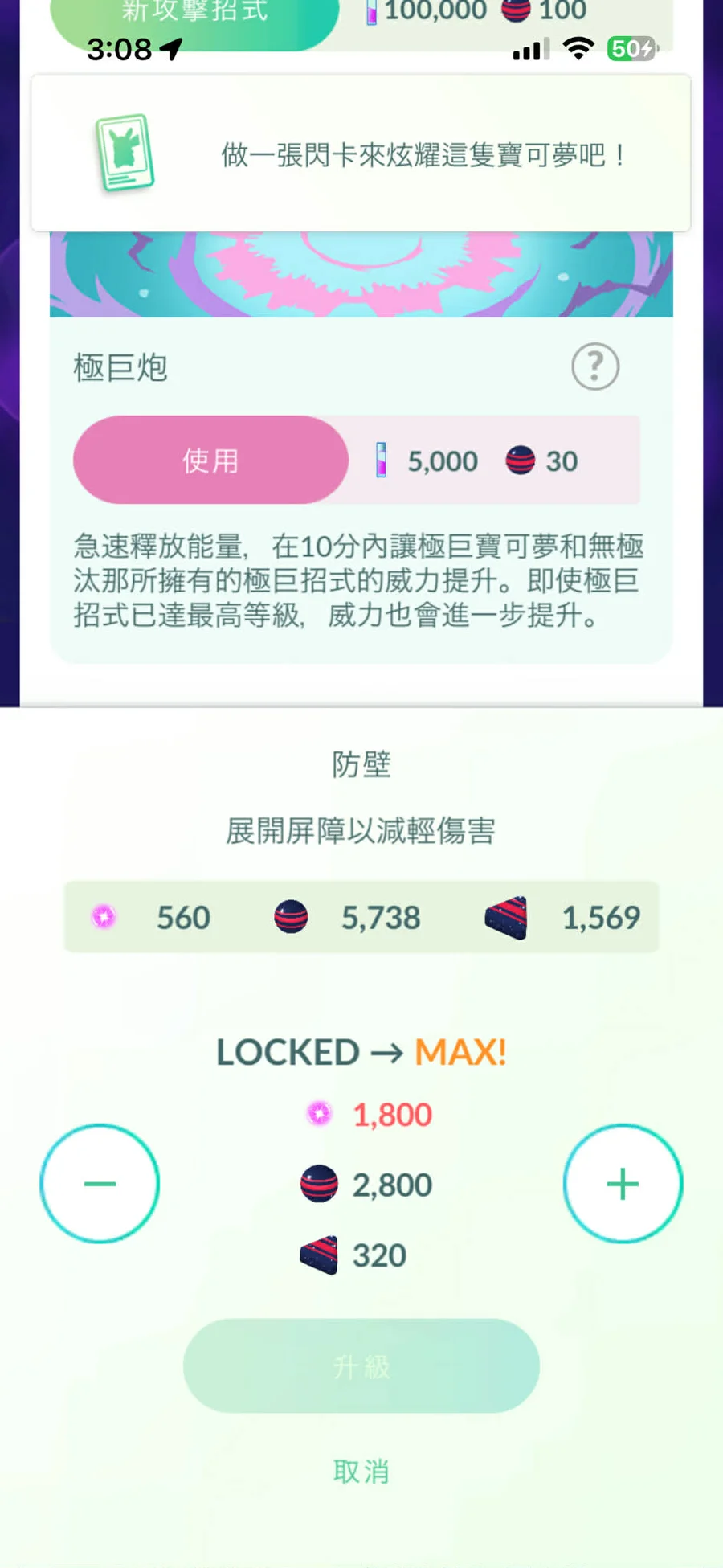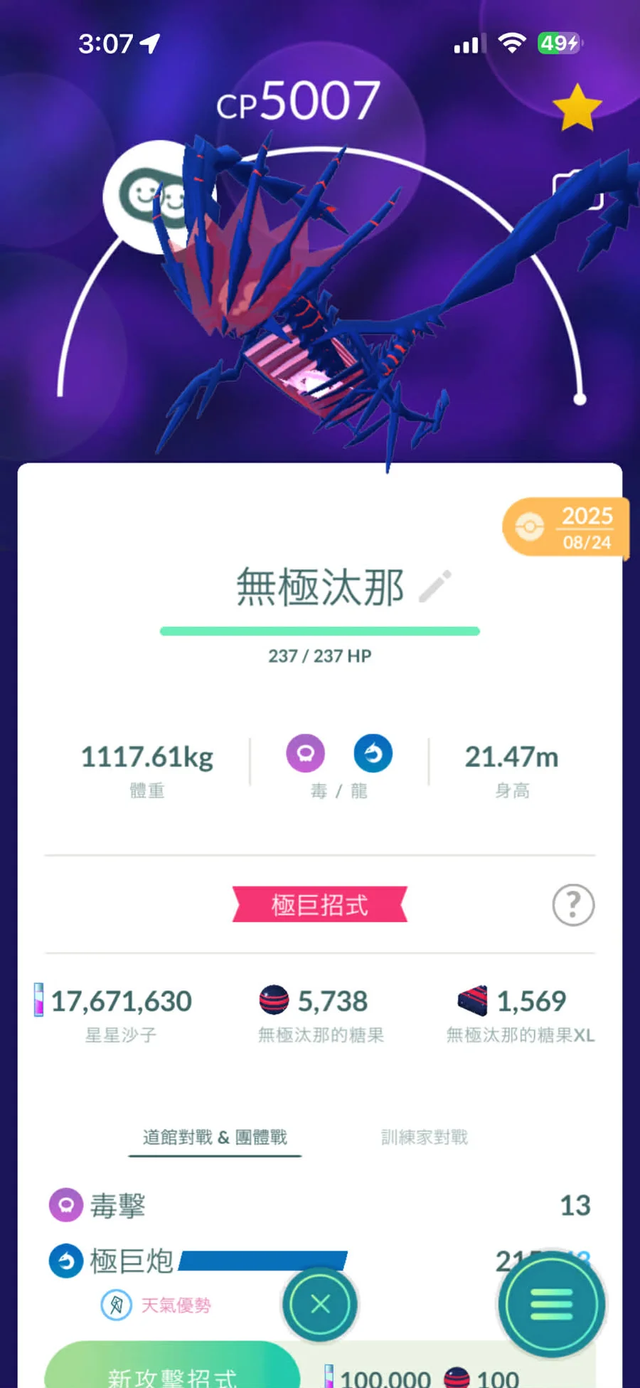 2.保證有1隻無極汰那IV100+可練滿LV50+2技能+極巨化技能。