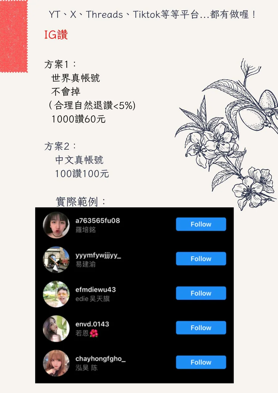 「全場最便宜」IG 粉絲、貼文按讚、分享留言等等...