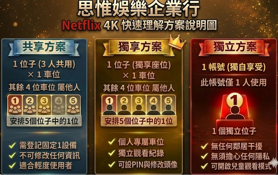 【初始號】【思惟數位】Netflix4K|共享/獨享/獨立|政府立案・10萬銷量|送VPN