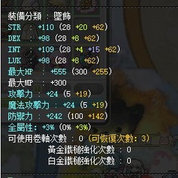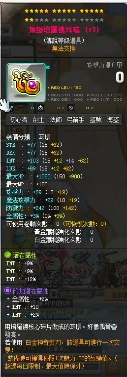 潛能 傳說30%INT 稀有2%全+2%INT+10INT