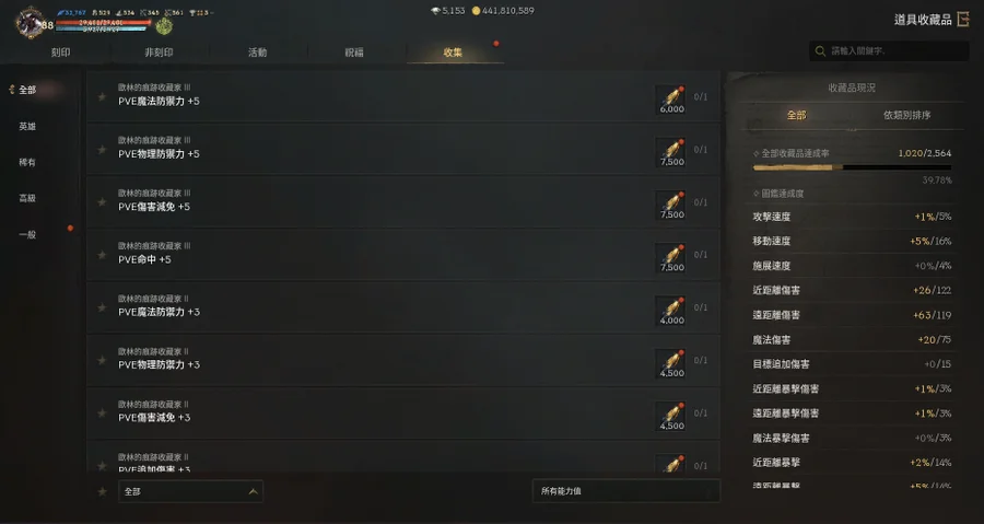 【總收藏】: 39.78% (遠傷+64、遠命+75、敏捷+18、物防+103、減傷+14)