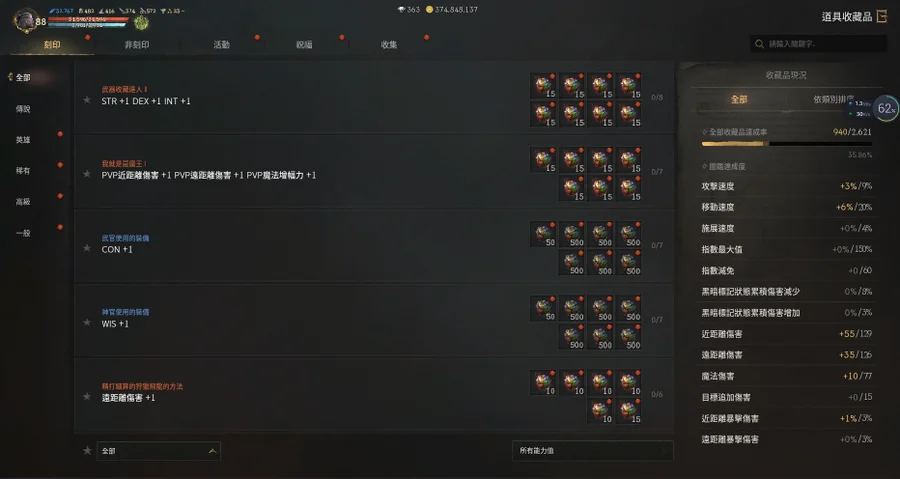 【總收藏】: 35.86% (近傷+55、近命+78、力量+23、物防+103、減傷+18)