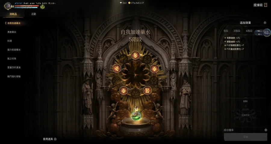 【提煉術】:加速5階、勇水5階、料理5階、魔力5階、龍珠5階、濃湯3階、戰鬥捲5階
