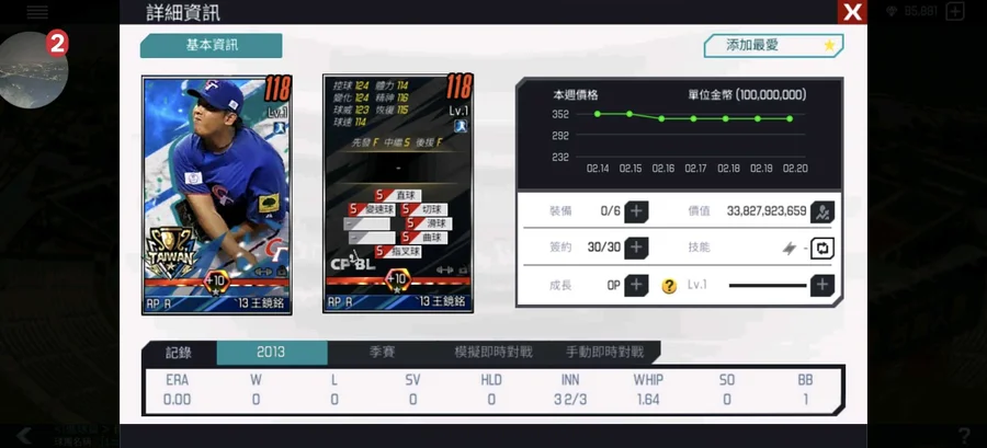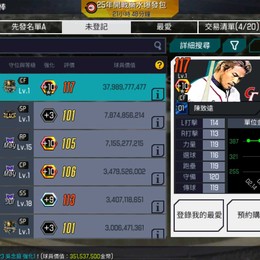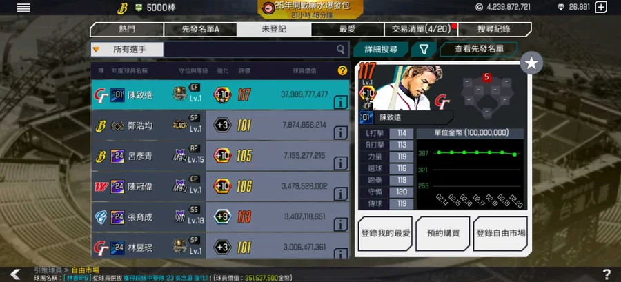 超中+10,一星陳致遠卡價360億