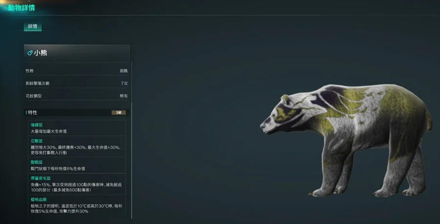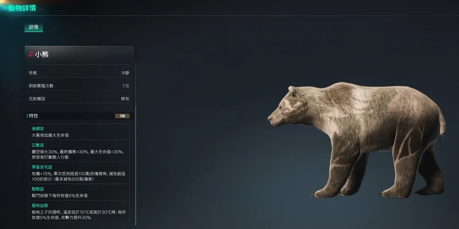 🔸畢業酣戰熊:巨獸3/酣戰3/厚毛3/強健3/極地血脈,繁育次數7:$ 1000