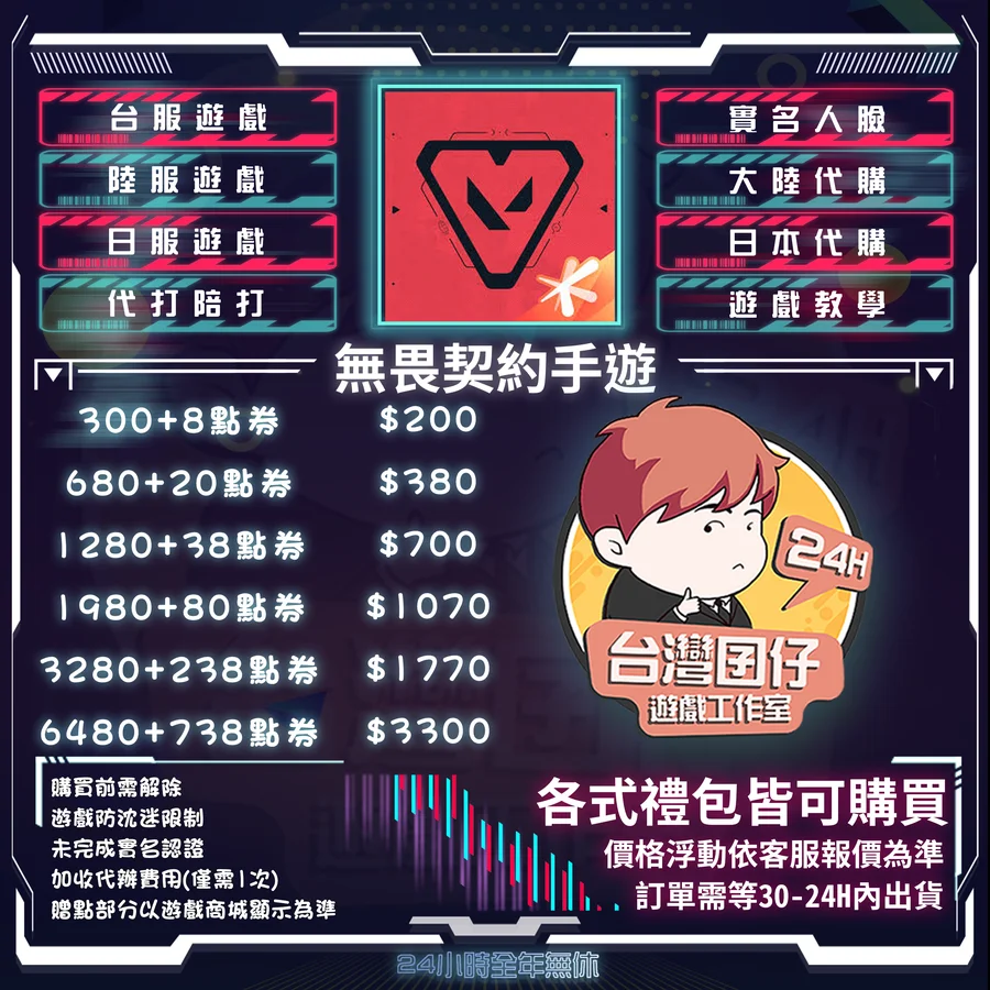 6️台灣囝仔台陸手遊代儲純粹為協助代儲服務,僅收取服務費,無賺取額外差價。