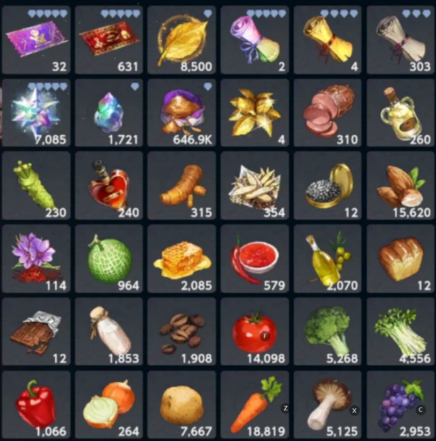 木材、金礦、聖石、眼淚、古水皆為稀缺資源