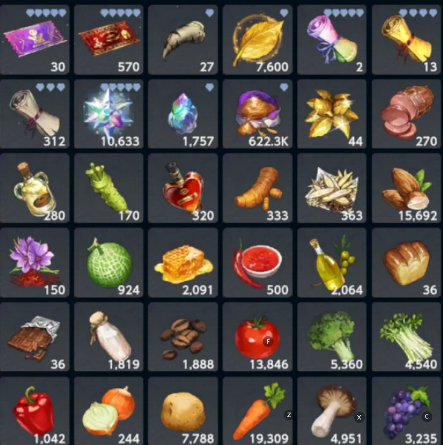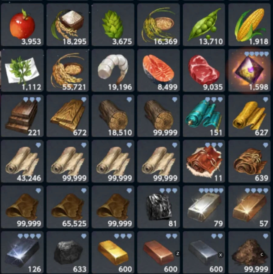 木材、金礦、聖石、眼淚、古水皆為稀缺資源