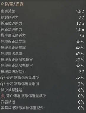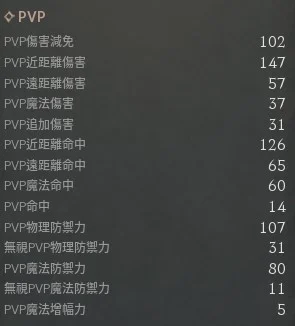 【無視PVP物理防禦】31【PVP減免】116【絕對迴避】34【無視近迴】121【遠迴】197【近迴】125