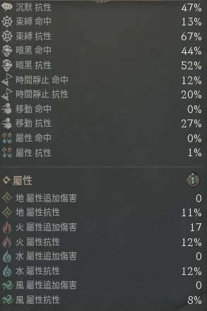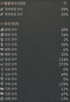 【暈命】:124%【黑暗精靈命中】59%【抗暈】:273%【黑暗精靈抗性】:20%