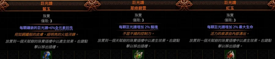 珠寶流亡黯道2👌傳奇→巨光譜.紅玉(增加生命)、翠綠碧雲(精魂)、藍玉(元素抗
