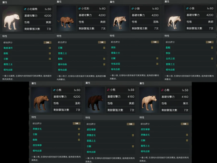 - S 級 5詞畢業 坦熊(棕熊) 一對 厚實皮毛3/巨獸3/酣戰3/感受寧靜/極地血脈 (適合坦惡夢/羅賽塔/高傷區域) $ 250