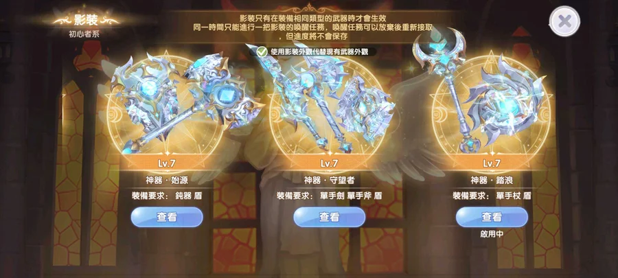 1. 影裝:錘盾7 劍斧盾7 杖盾7