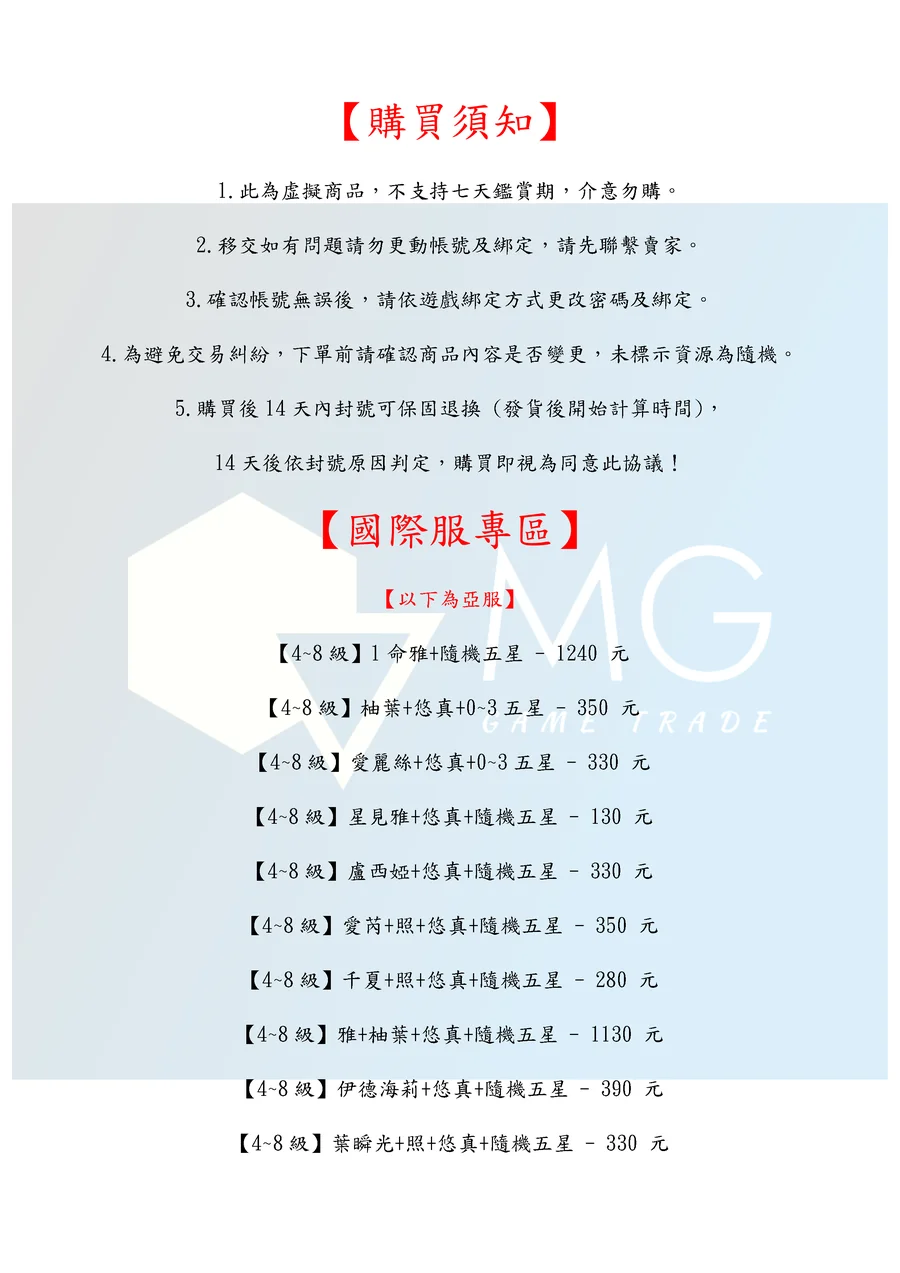 4.為避免交易糾紛,下單前請確認商品內容是否變更,未標示資源為隨機。