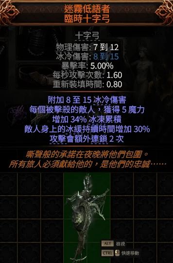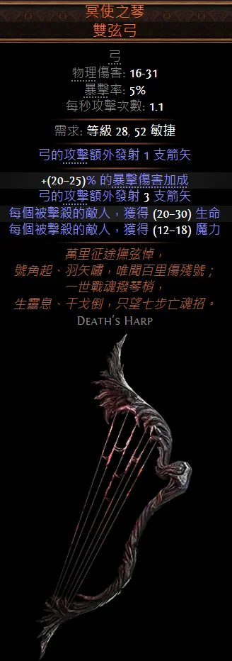 【弓、冥使之琴】冥使之琴 +4額外箭矢 初始拓荒神武/迷霧低語者+2連鎖