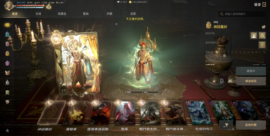 技能:3紫技-冥府使者/處決(強化教典)/附身(紫武紫技) 身上咒語硬幣22.8W