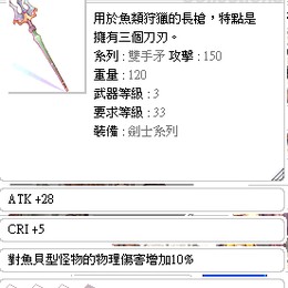 『頂級便宜』+9三叉戟 28ATK CRI+5 魚貝類10% 內有圖 快交易