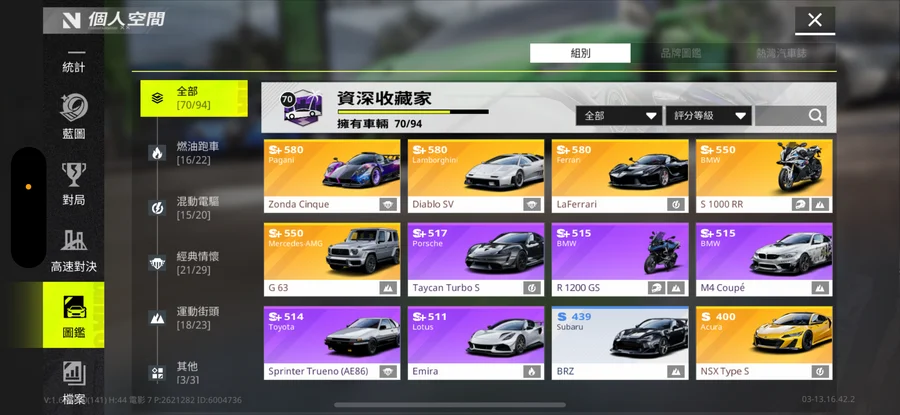 【30等】殿堂4台 其他都金車