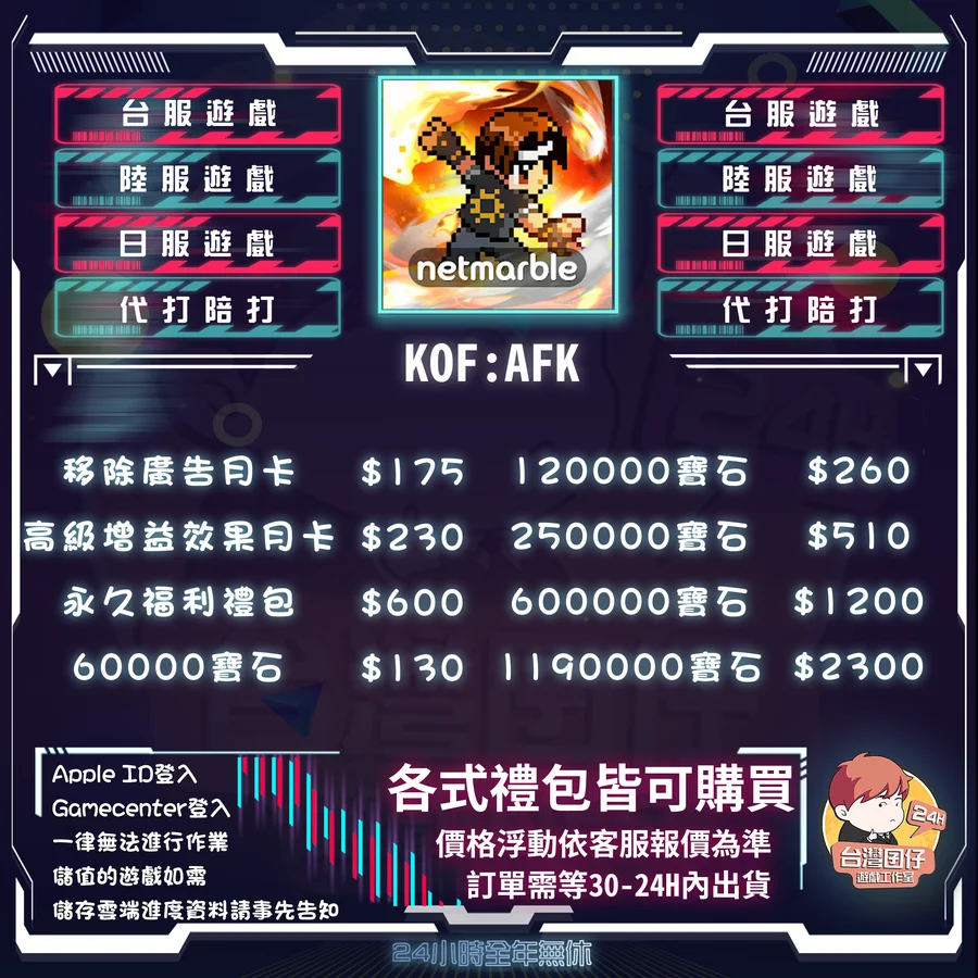 6️台灣囝仔台陸手遊代儲純粹為協助代儲服務,僅收取服務費,無賺取額外差價。