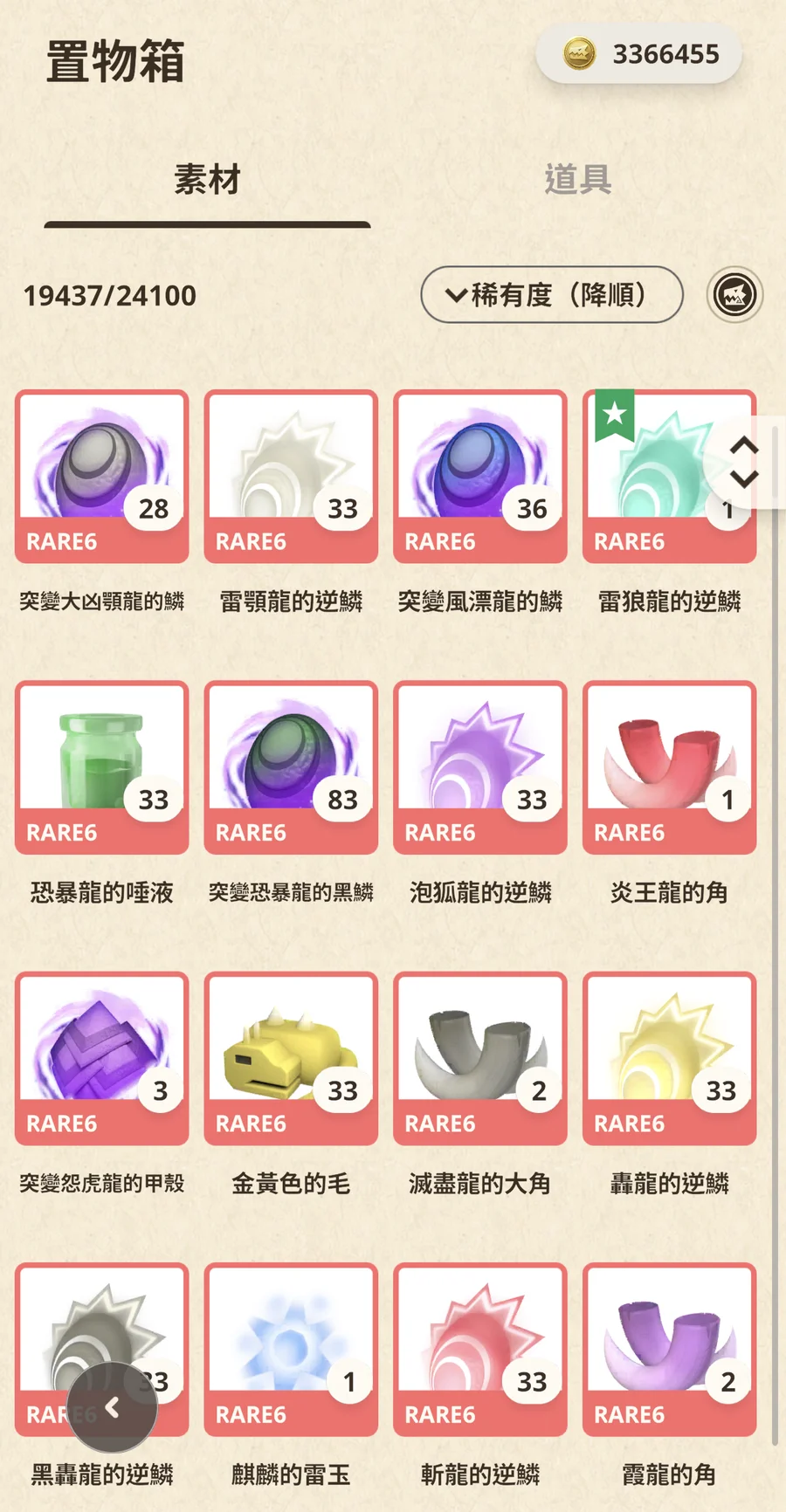 魔物本身的素材都已保留到10-5