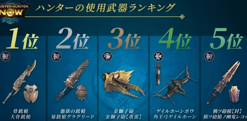 官方統計最常見的5把武器其中3把是銃槍(如圖)