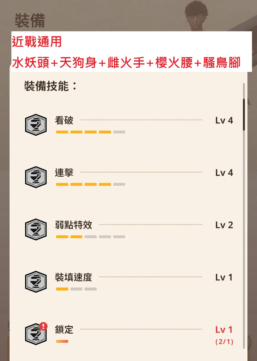 近戰武器(通用)可組看破4+連擊4+弱點特效2+鎖定套裝,