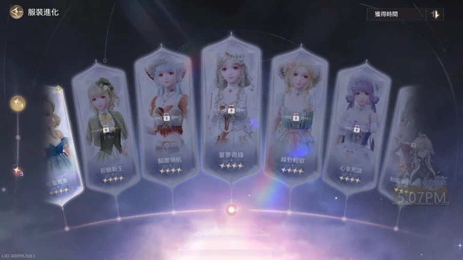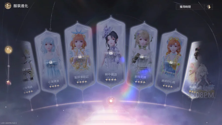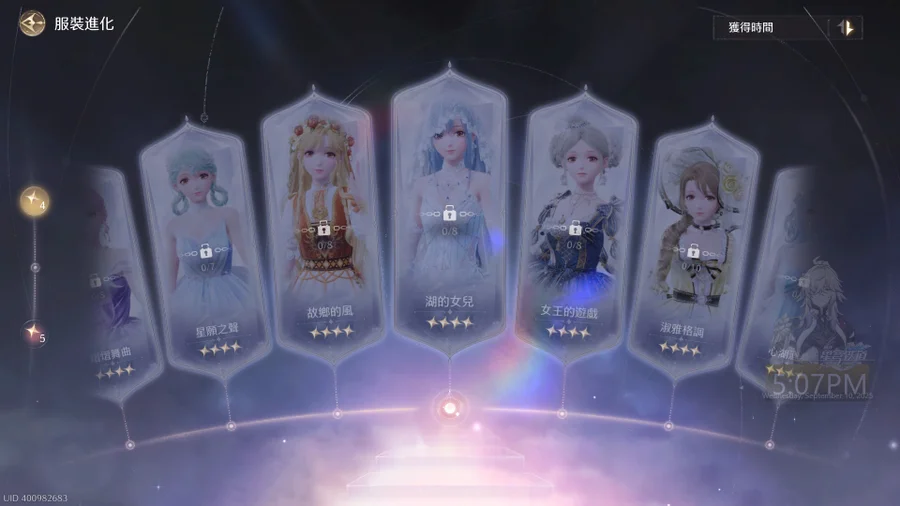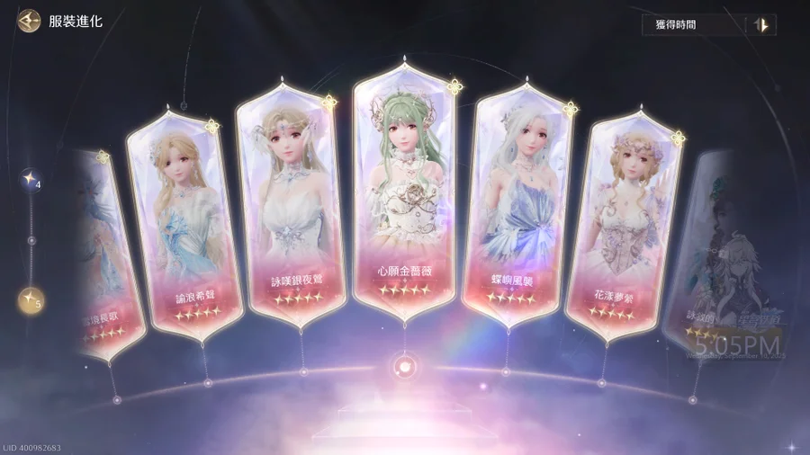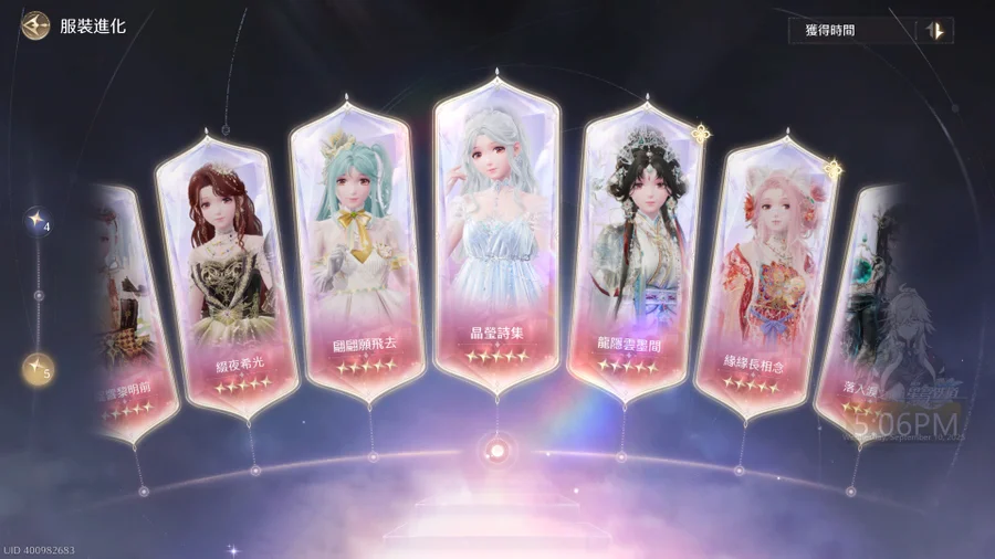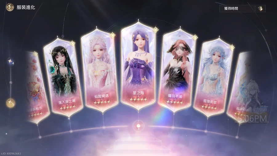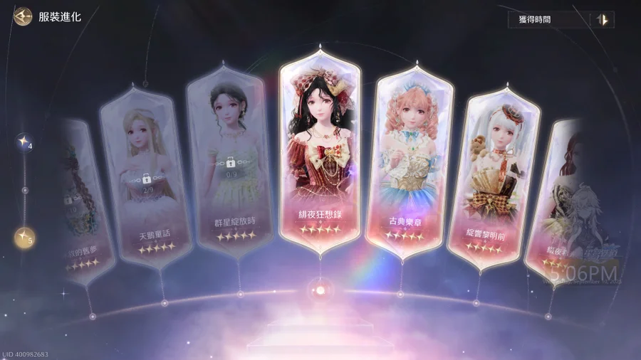 ➨滿階:仙子、蝴蝶、金薔薇、銀夜鶯、海浪、人魚、飛鳥、星之海、教母、蛇套、貓套、龍套